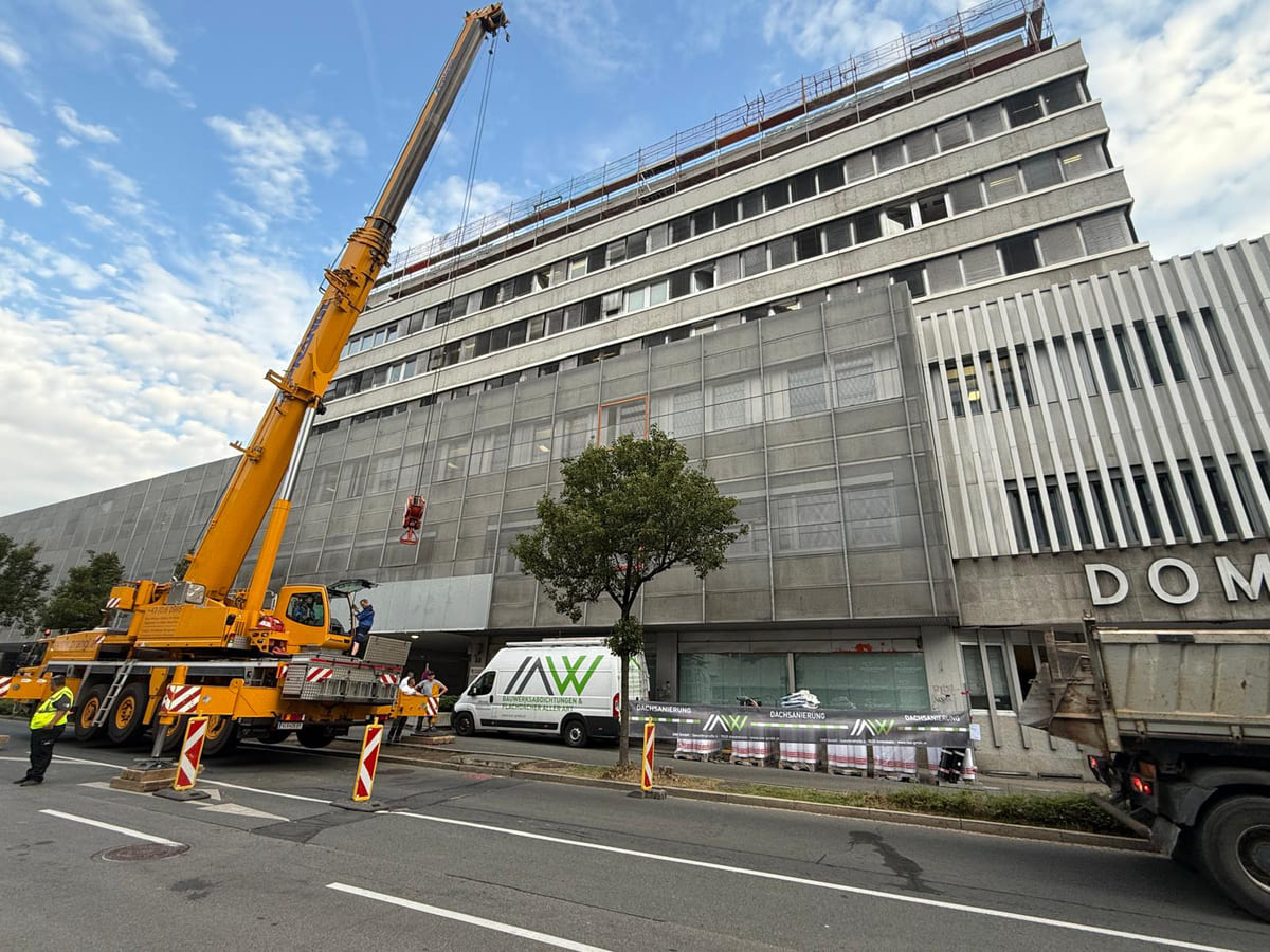 Dachsanierung Domplatz, Paulitschgasse 13 – Amtsgebäude Magistrat Klagenfurt. Auftraggeber: Magistrat Klagenfurt. 700 m² Dachsanierung, Foliendach mechanisch befestigt, Abriss bis zur Betondecke, kompletter Warmdachaufbau inkl. neuer Dampfsperre und allen Spenglerarbeiten, unter Aufrechterhaltung des Betriebes. Bauzeit: 2025.